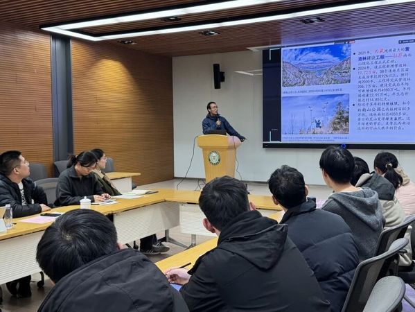 在专题报告环节,学校特邀生态与环境学院王亚锋教授作题为《深耕西部,爱在高原》主旨报告。王教授结合长期在青藏高原开展科研工作的经历,从国家战略全局出发,系统讲述西部生态安全、民族地区教育现状及人才需求等内容,加深了成员对新时代西部发展现状和需求的理解。