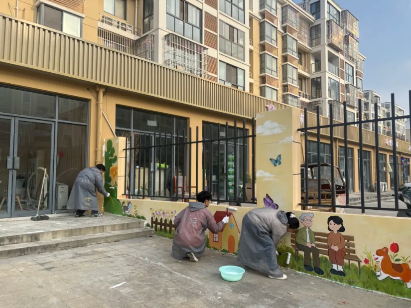 12月6日至8日,我校艺术设计学院的13名同学组成志愿服务团队,走进句容市宝华花园社区,开展了为期三天的“墙绘焕新家园 校社共绘温情”社区墙绘志愿服务活动。南林青年以专业为笔、以热情为墨,将原本素净的墙面转化为一幅幅温馨生动的艺术画卷,赢得了社区居民的广泛赞誉,也为社区文化建设注入了鲜活的艺术气息。