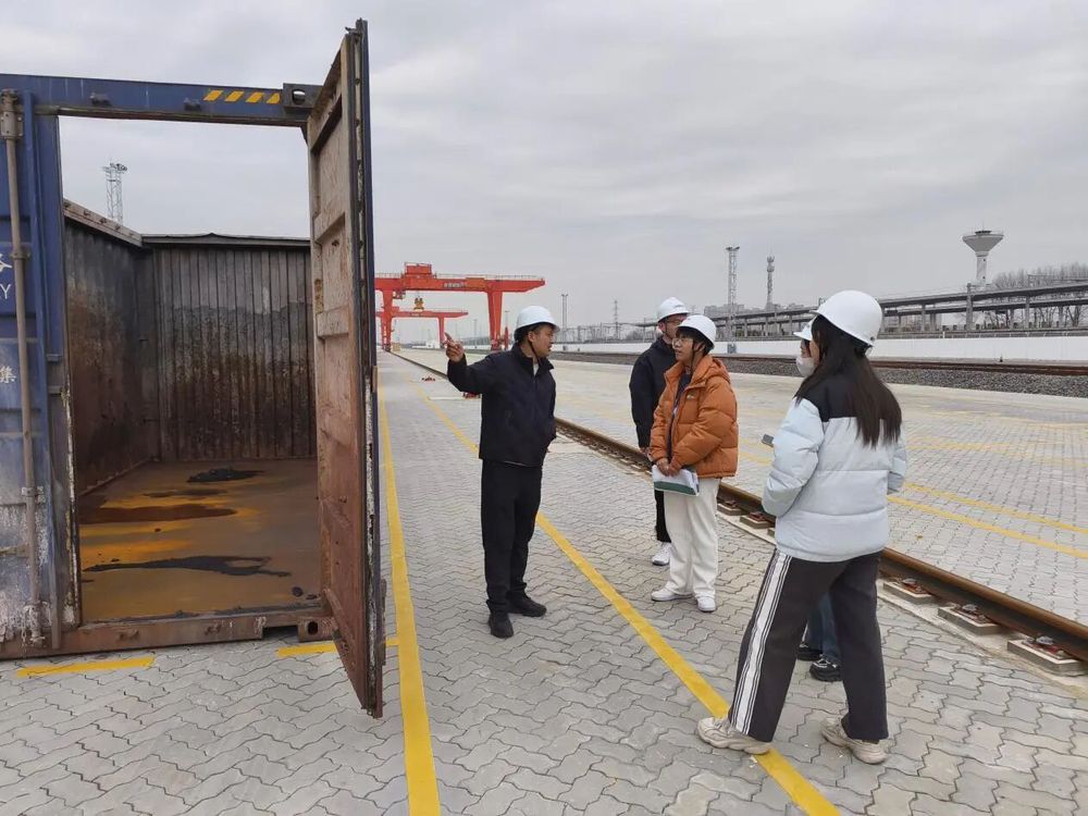 在参观过程中,实践团成员们还参观了货物的进出全过程,从货车的缓缓驶入到货物的有序卸载,再到重新装载发往附近港口,每一个步骤都井然有序,展现了扬州班列在物流管理上的专业与严谨。成员们纷纷表示,这次实地参观学习让他们对现代物流行业有了更加直观的认识,也进一步激发了他们对未来职业发展的憧憬和信心。